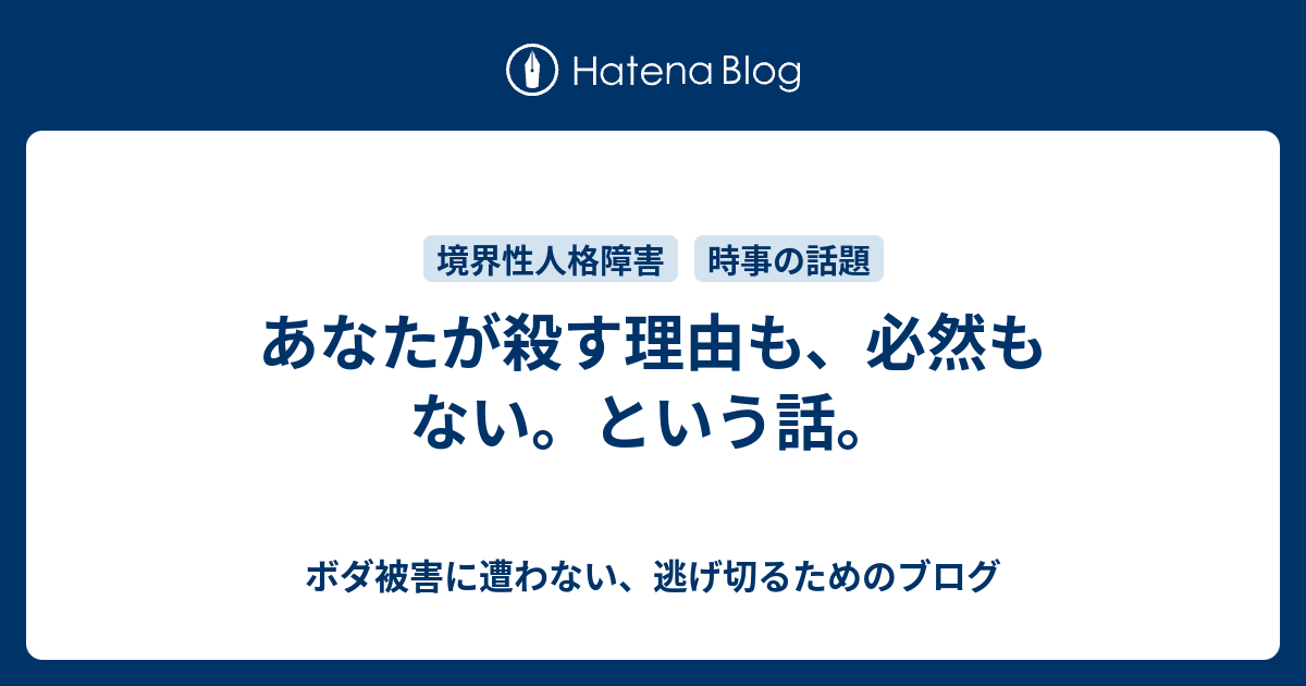 あなたが殺す理由も 必然もない という話 ボダ被害に遭わない 逃げ切るためのブログ