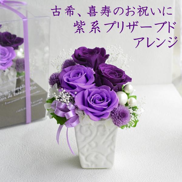 プリザーブドフラワー 誕生日 プレゼント 花 古希 喜寿 枯れない花 70才 77才 紫バラ 送別 お祝い 花ギフト クリアケース入り オーロラバイオレット Purple003 花らんどうえきヤフー店 通販 Yahoo ショッピング