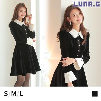 襟付き ベロア フレアワンピース ドレス 盛り袖 ベルベット パーティー 結婚式 華奢見え ミセス 七五三 入学式 スーツ ママ 卒業式 服装 母 Mr7001mt Luna G 通販 Yahoo ショッピング