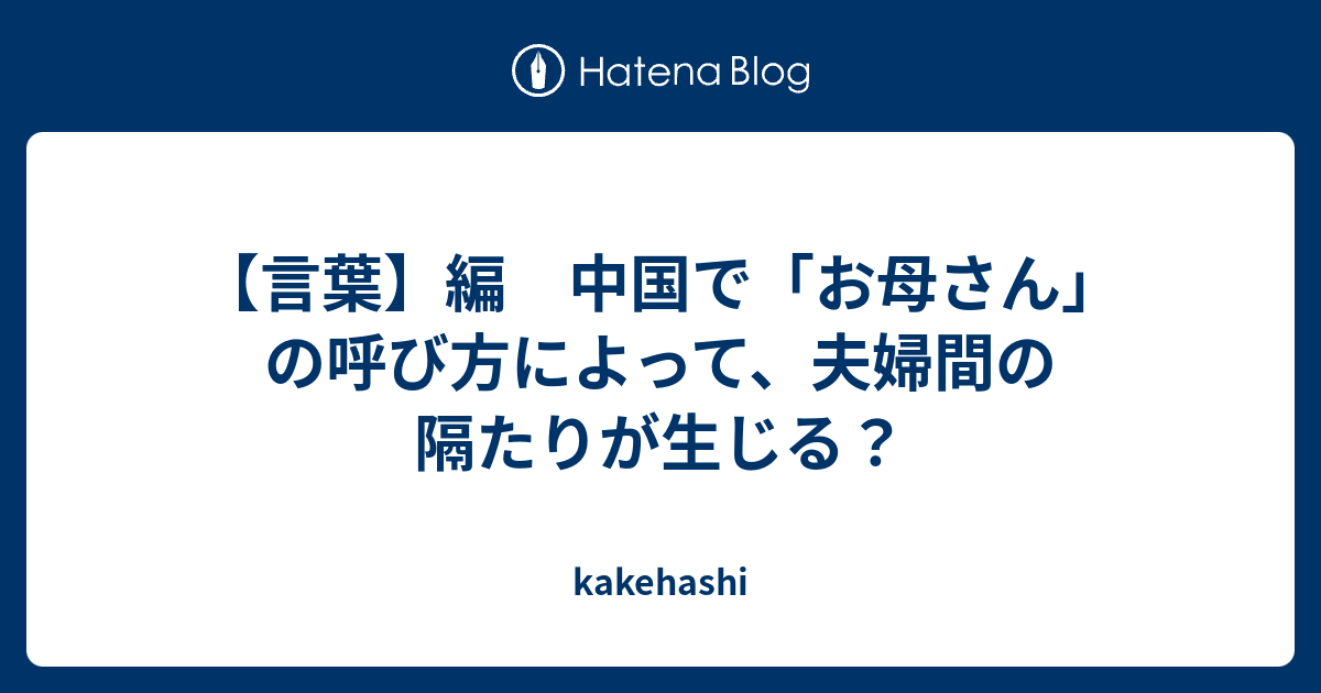 言葉 編 中国で お母さん の呼び方によって 夫婦間の隔たりが生じる Kakehashi